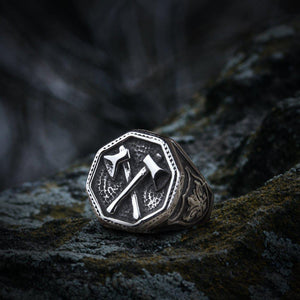 Cross Double Battle Axe Viking Ring