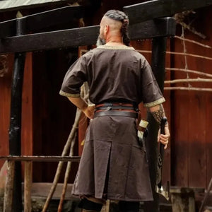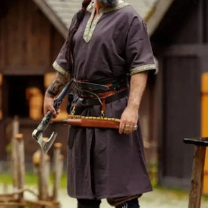 Embodies the essence of fierce Norse warriors, with its intricate detailing and rugged design. Crafted from high-quality cotton with short sleeves and elaborate embroidery, it offers durability, comfort, and traditional Viking style. Perfect for reenactments, LARP events, or anyone seeking a historically-inspired garment.