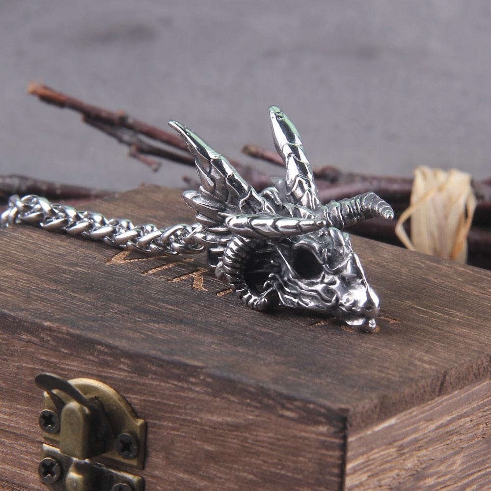 Dragon Skull Steel Pendant Necklace - Nidhogg Corpse Eater