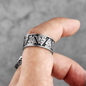The Odin's Valknut Steel Men's Viking Ring is a powerful symbol of strength and protection. Made from 316L stainless steel, this ring is available in 7-13 sizes and features a geometric design that honors the Norse god Odin.