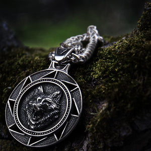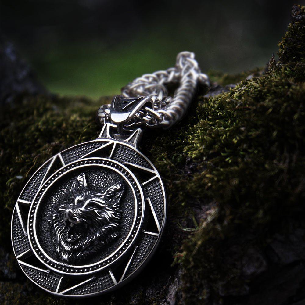 Handcrafted Fenrir Wolf of Ragnarok Medallion Talisman Necklace: Durable Steel Viking Jewelry