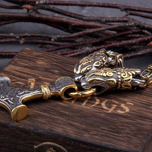 Serpent Mjolnir King’s Chain in Gold & Steel