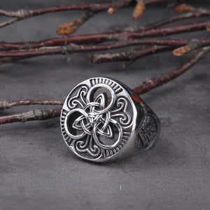 Steel Viking Knotwork Triskelion Ring
