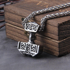 Steel Knotwork Heavy Thor's Hammer Mjolnir Pendant Necklace