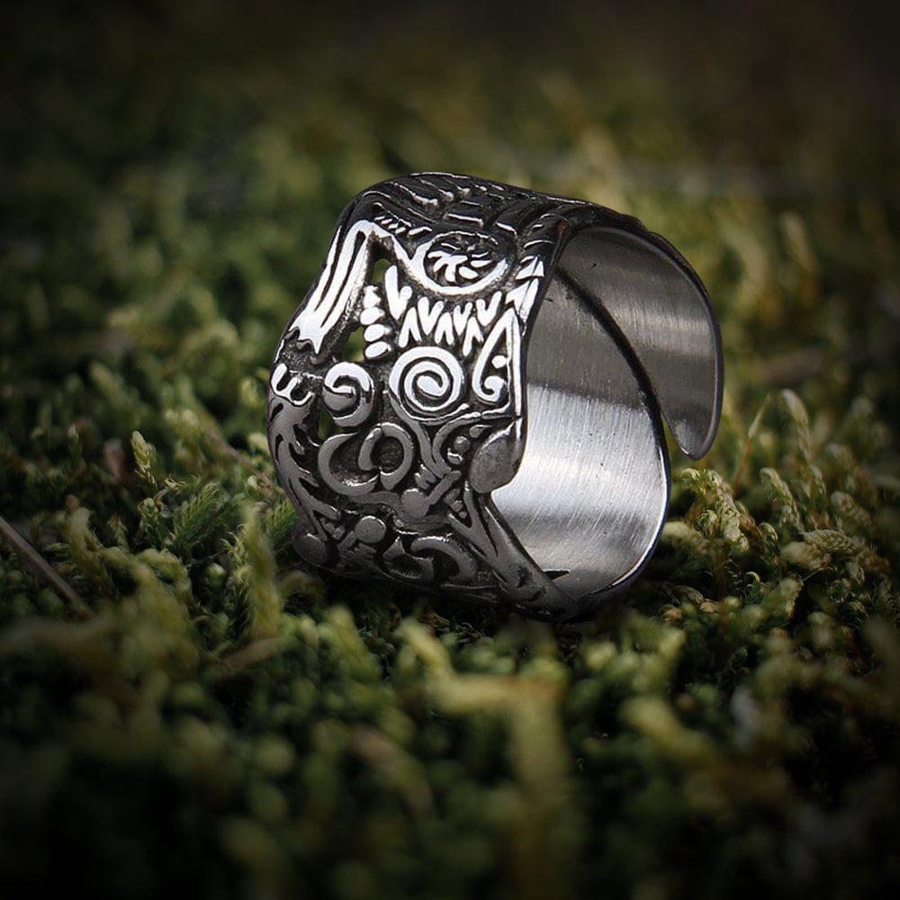 Stainless Steel Odin Nordic Viking Wolf Ring | Handcrafted
