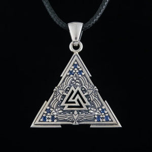 This sterling silver Valknut pendant features Odin's ravens flanking the sacred three-triangle symbol. Vikings carved the Valknut on memorial stones and burial goods to honor warriors who fell in battle. The symbol represents Odin's power to bind and unbind the fates of men. Cast in 925 sterling silver with raven ornamentation that pays tribute to Huginn and Muninn, the Allfather's messengers who flew across Midgard gathering wisdom.