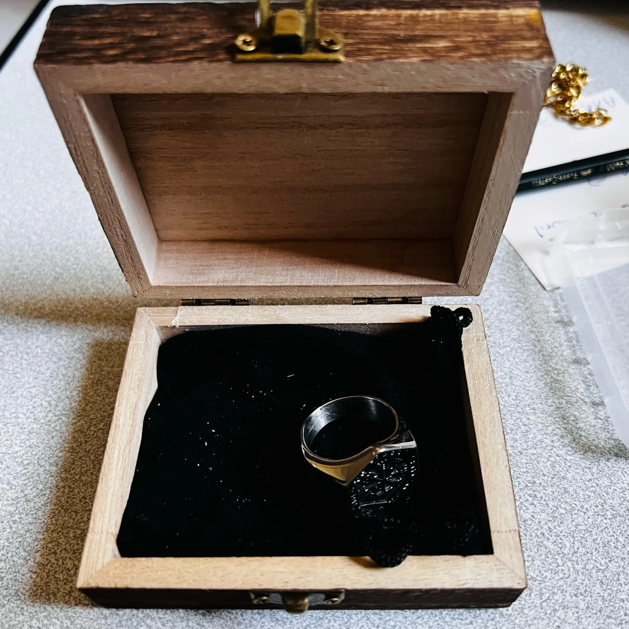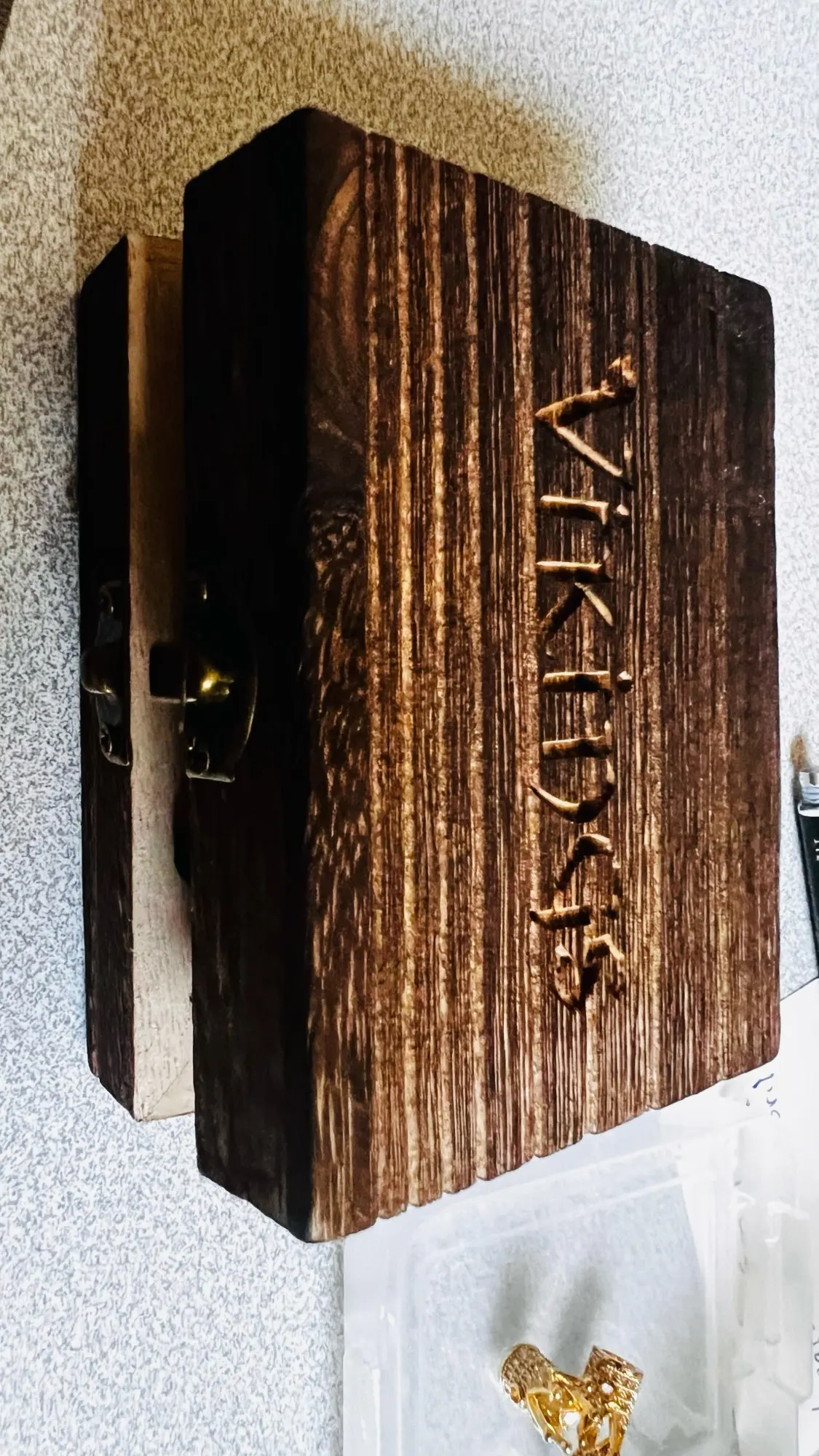 The sides of the ring are inscribed with Yggdrasil, the tree of life, and the Valknut, sometimes also called Odin’s knot.