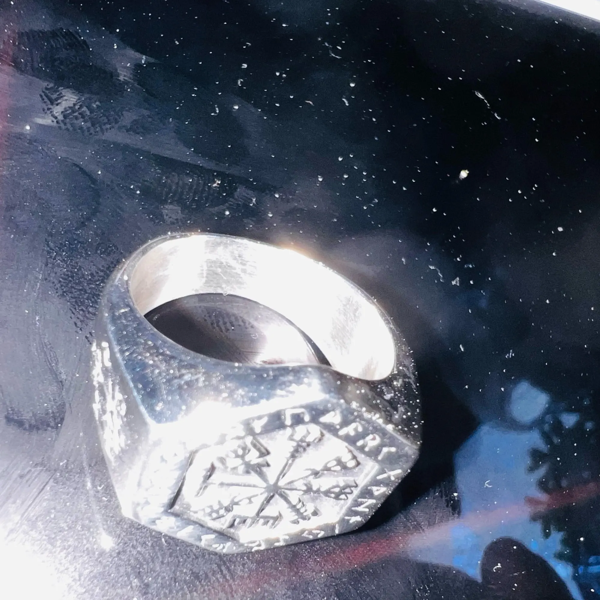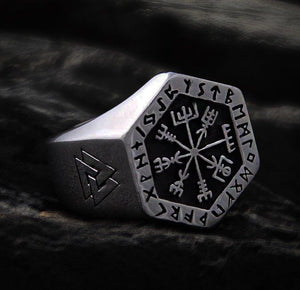 Hexagon Bold Viking Compass Vegvisir Ring – Stainless Steel. This Premium Stainless Steel Ring is from our Handcrafted Viking Forge Line.