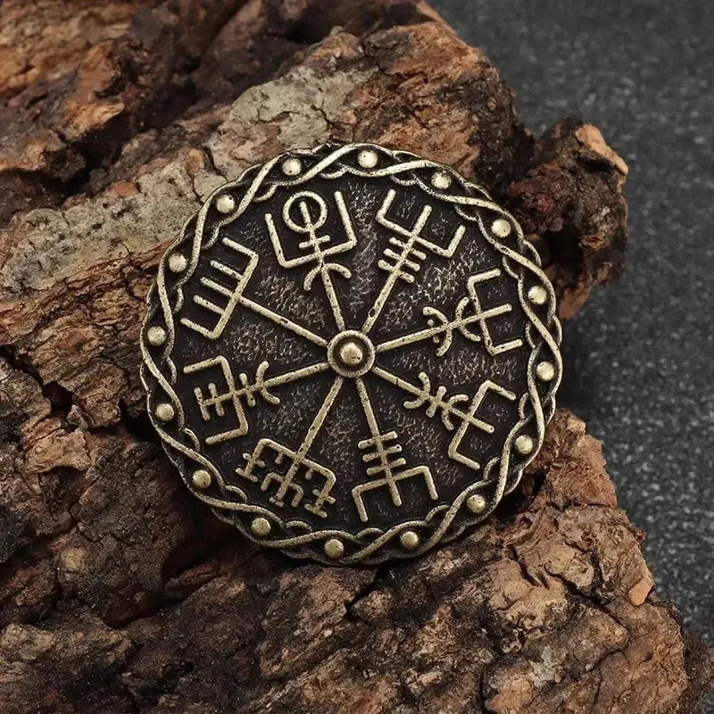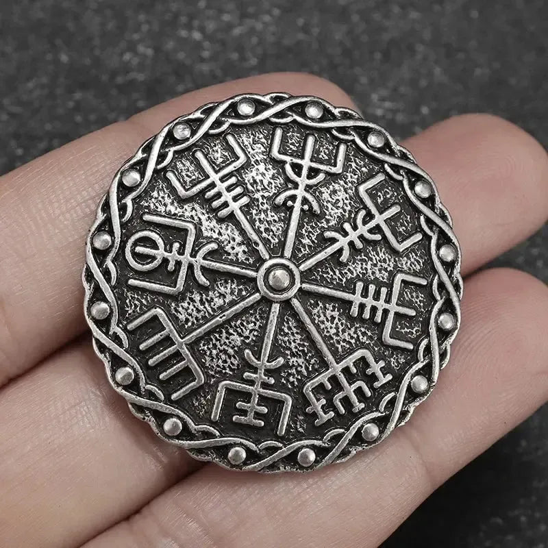 Vegvisir Viking Compass Brooch with Norse Protection Symbol
