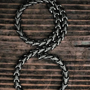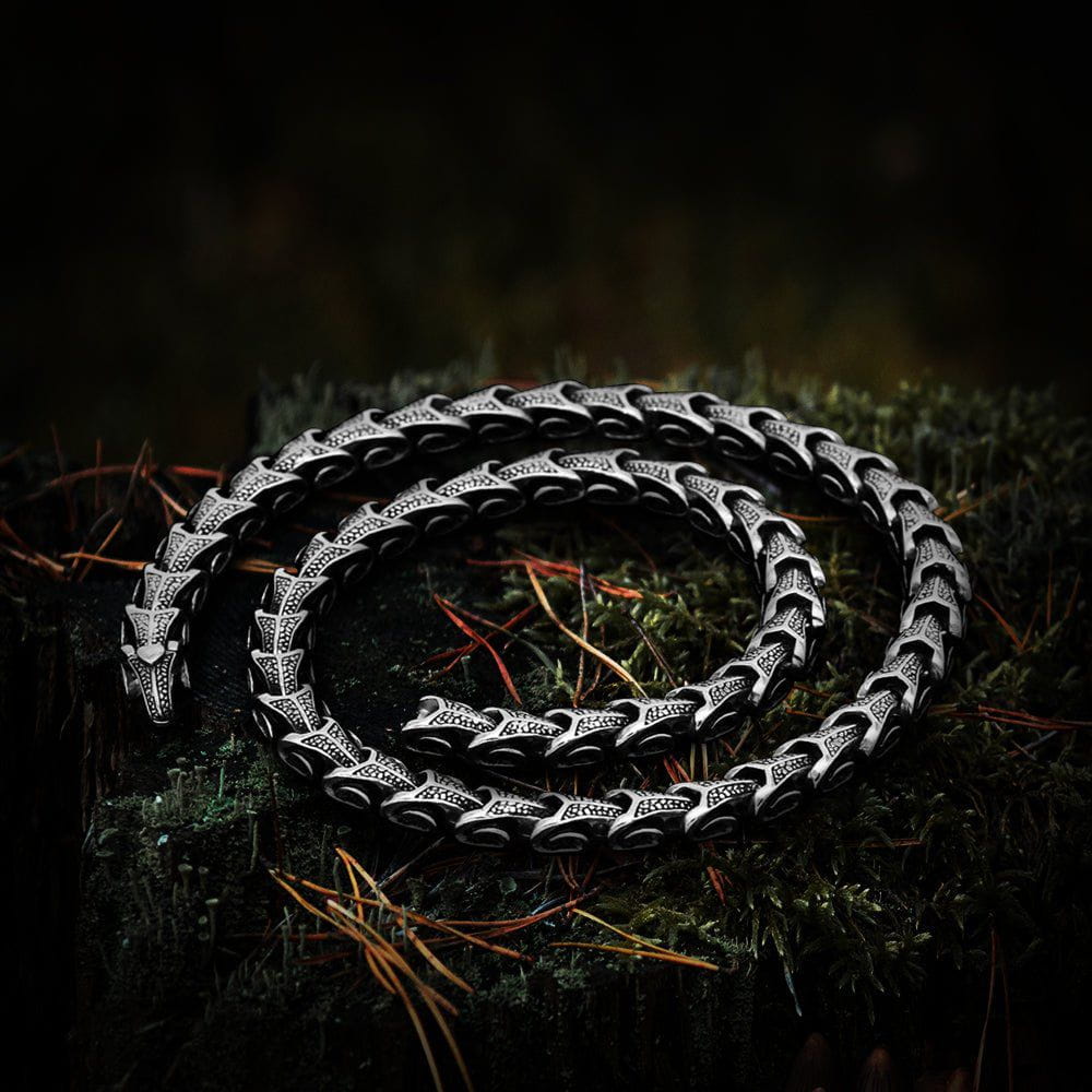 This is a beautiful hand-cast segmented scale Jörmungandr Midgard Serpent World-Serpent Segmented Necklace forged in steel.