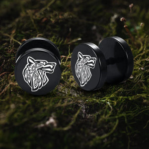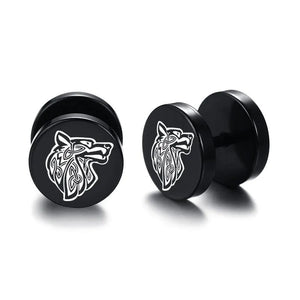 Viking Earrings with Fenrir’s Symbol - Black Norse Wolf Studs