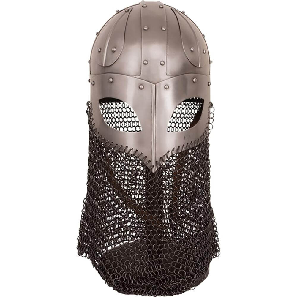 Chainmail rests naturally on your shoulders. Moves when you move. The spectacle design provides excellent vision while maintaining period accuracy. Four-plate skull construction follows actual Viking helmet patterns from Scandinavian archaeological sites. Foam interior keeps you comfortable during extended wear.