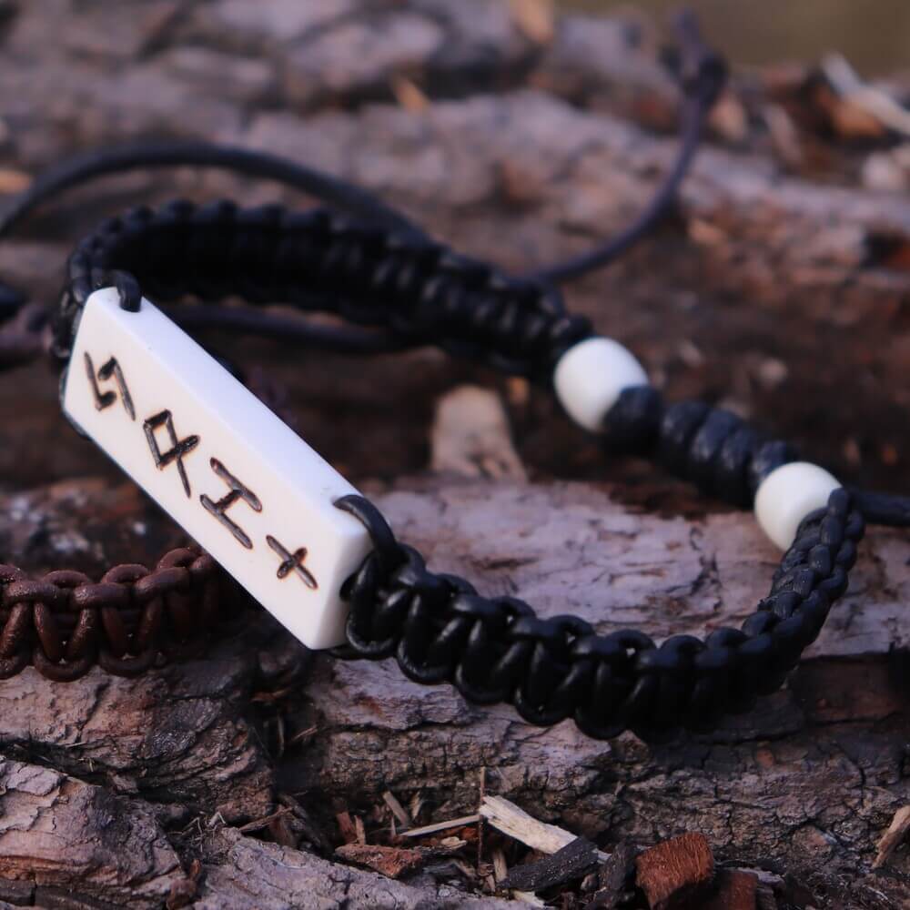 Wear your name in ancient runes. This leather Viking bracelet gets personalized with your chosen inscription burned into genuine white deer bone. Norse warriors marked their gear with runes for power and identity. Now you carry that same tradition on your wrist. Each bracelet is handmade to order with Elder Futhark symbols that connect you to the old ways.