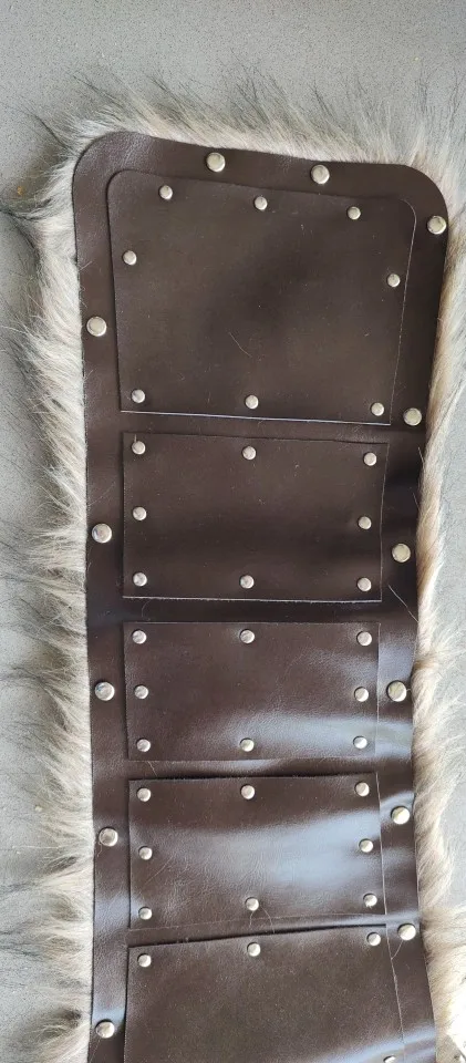 This Viking single-shoulder protector is perfect for anyone who wants to take their Viking costume to the next level. It is decorated with rivets and edges sewn with faux fur, for a fearsome look. Whether you're looking to intimidate your enemies or just want to stand out at your next Viking re-enactment, this shoulder armor is perfect for you.