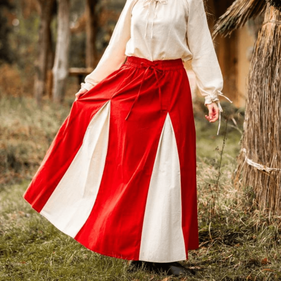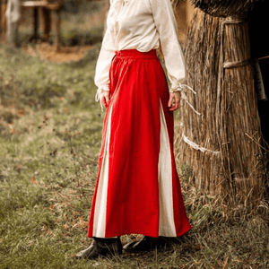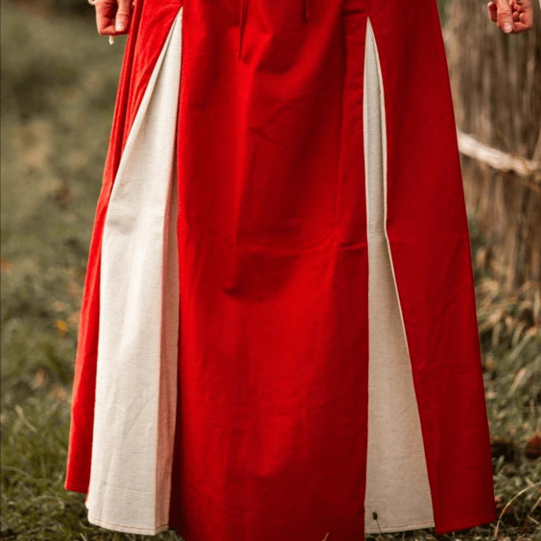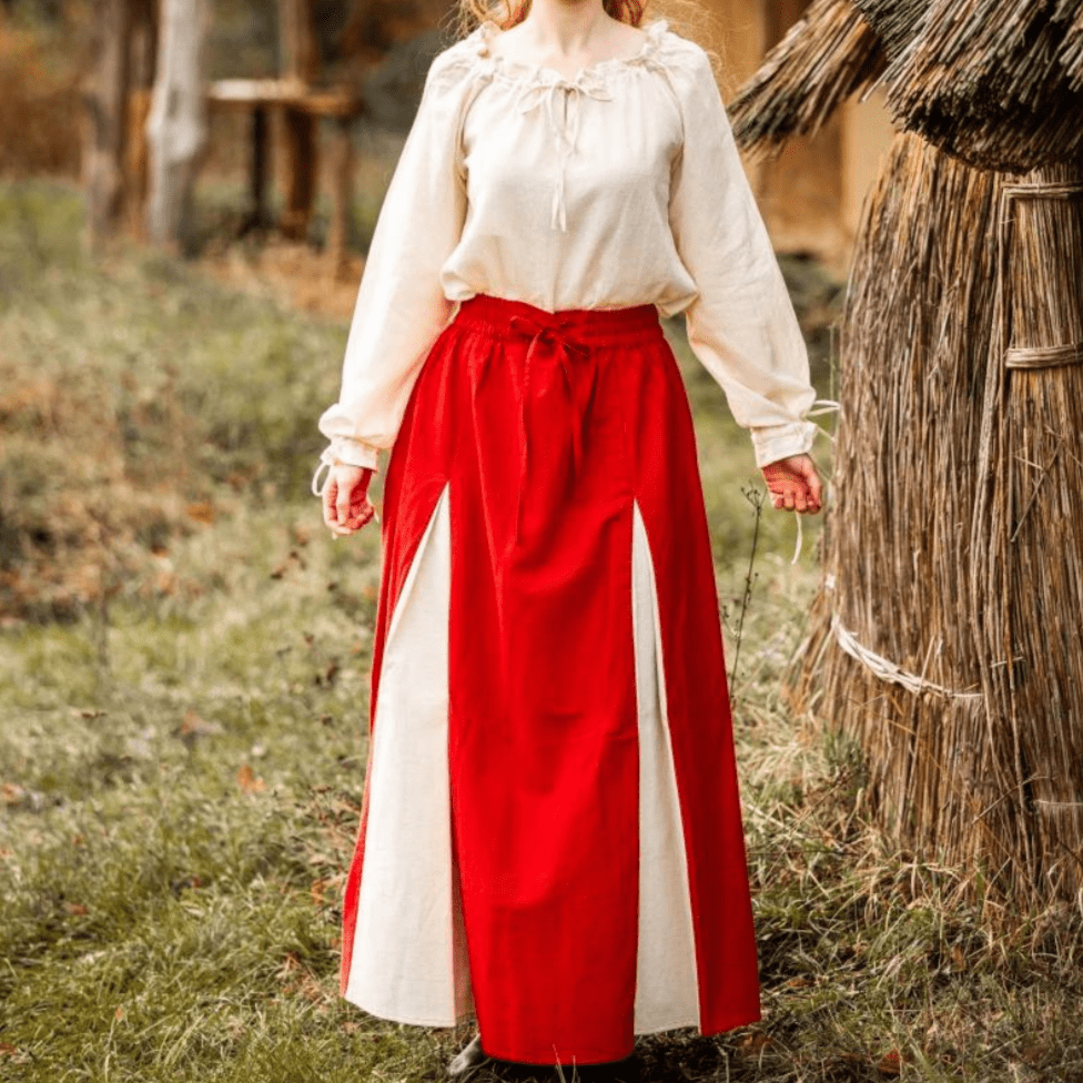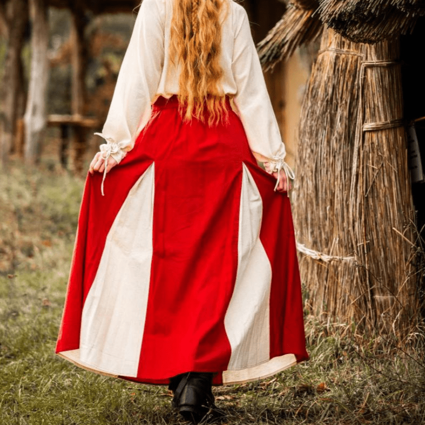 Attend events in classic Viking style with our Red & Natural Viking Skirt. Crafted from a high-quality cotton-linen blend, its vibrant colors and lace-up front offer both comfort and a striking historical look. Perfect for reenactments, LARP events, or adding a touch of Viking flair to your everyday wardrobe.
