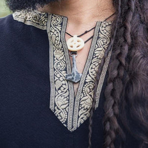 Embodies the essence of fierce Norse warriors, with its intricate detailing and rugged design. Crafted from high-quality cotton with short sleeves and elaborate embroidery, it offers durability, comfort, and traditional Viking style. Perfect for reenactments, LARP events, or anyone seeking a historically-inspired garment.