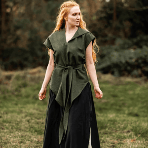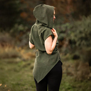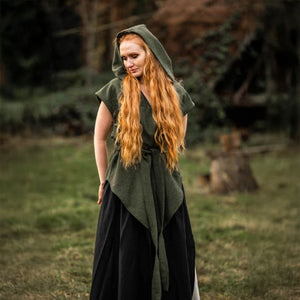 Introducing our Green Hooded Viking Tunic for Women. Crafted from soft cotton, it features a classic tapered design, a practical hood, and an included belt for an extra touch of style. Perfect for reenactments, LARP events, or anyone seeking a unique garment for daily wear.