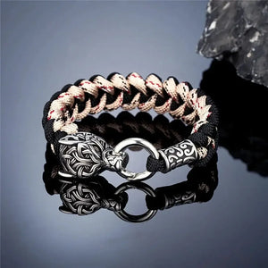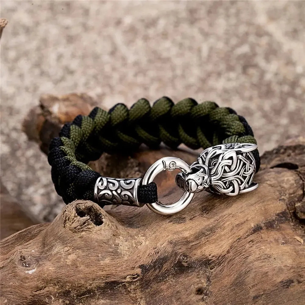Introducing our Viking Wolf Bracelet with Survival Rope, a unique and functional accessory that combines the powerful symbolism of Norse mythology with the practicality of a paracord bracelet. This bracelet features a striking wolf head design, reminiscent of the fierce and revered creatures that played a significant role in Viking lore. Available in a range of colors including red, black, green black, khaki, army green, dark blue, and camouflage, you can choose the one that best suits your style and personality.