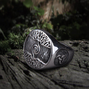 Feel the power and mystery of Yggdrasil, the Tree of Life, with this Stainless Steel Amulet Ring.